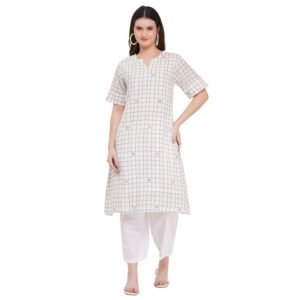 A Premium quality jamdani organic cotton kurta set is a dream to wear. The set includes both the kurta & the bottom. The material is extreamely soft on the skin and allows the body to breathe all the time.